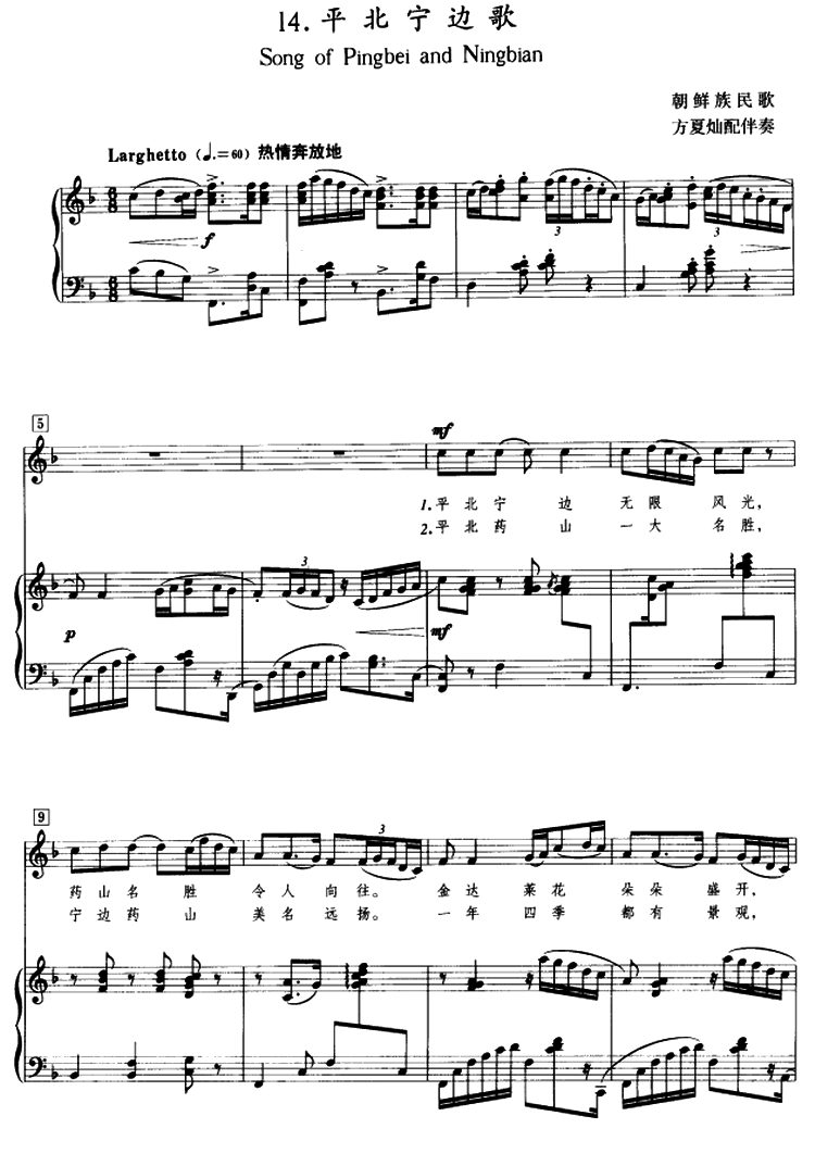 - [钢琴谱] 平北宁边歌