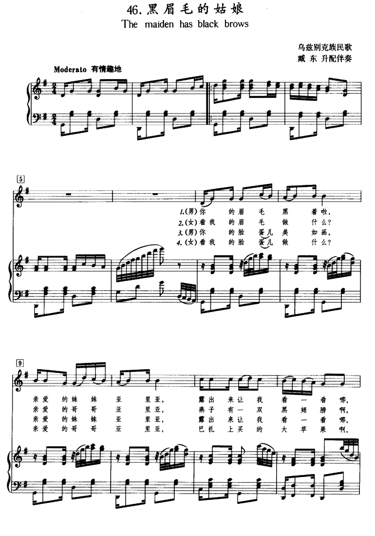 民歌钢琴小曲 乌孜别克族民歌 黑眉毛的姑娘