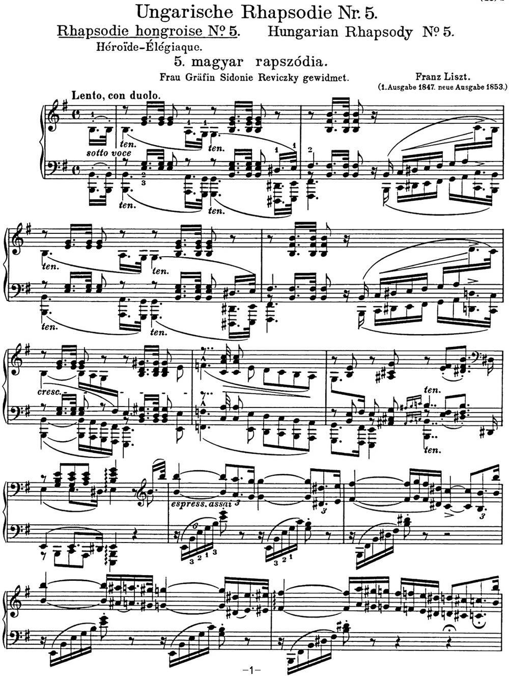 > 李斯特 匈牙利狂想曲 Hungarian Rhapsodies S 244 No 5