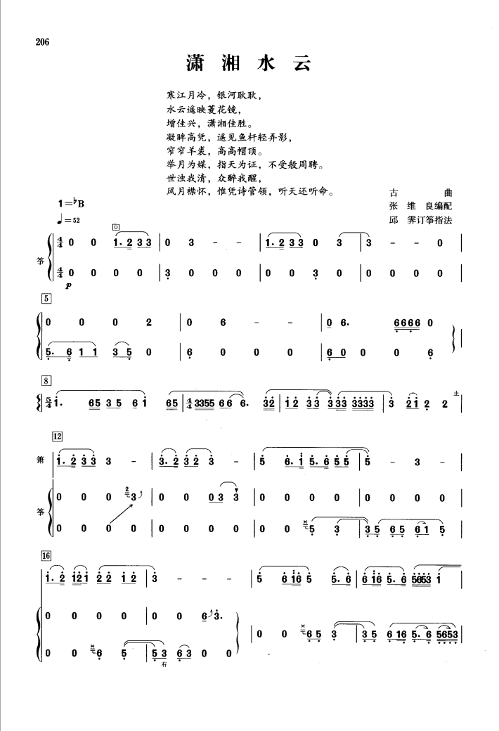 - [歌谱,古筝谱] 潇湘水云
