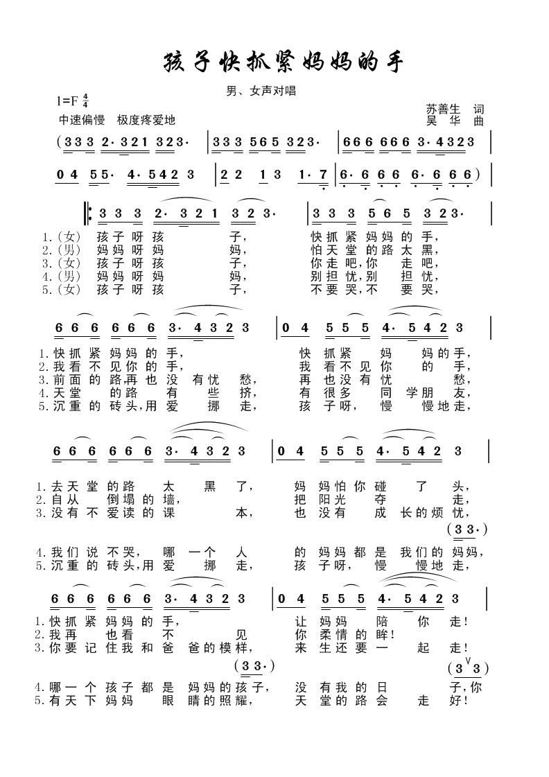 孩子快抓紧妈妈的手 纪念 5 12 男女声对唱