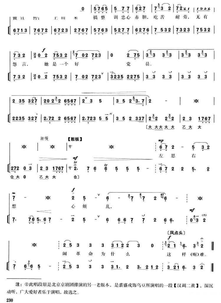 大火熊熊浓烟卷 杜鹃山 选段 京胡伴奏谱 京剧唱谱