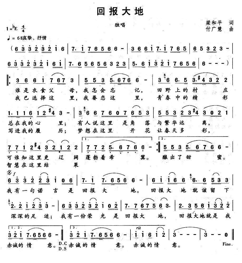 - [歌谱] 回报大地