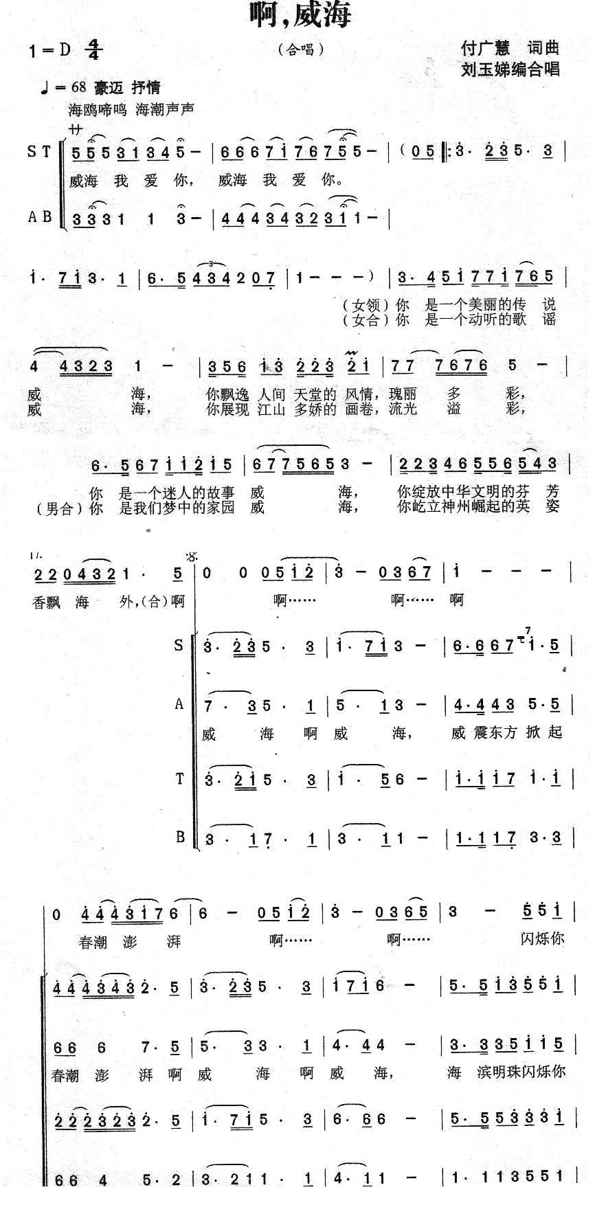 - [歌谱] 大爱威海