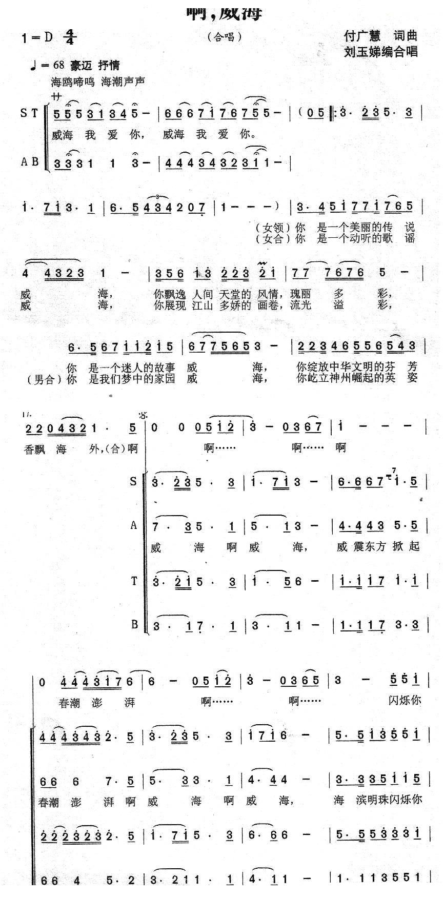 - [歌谱] 啊 威海