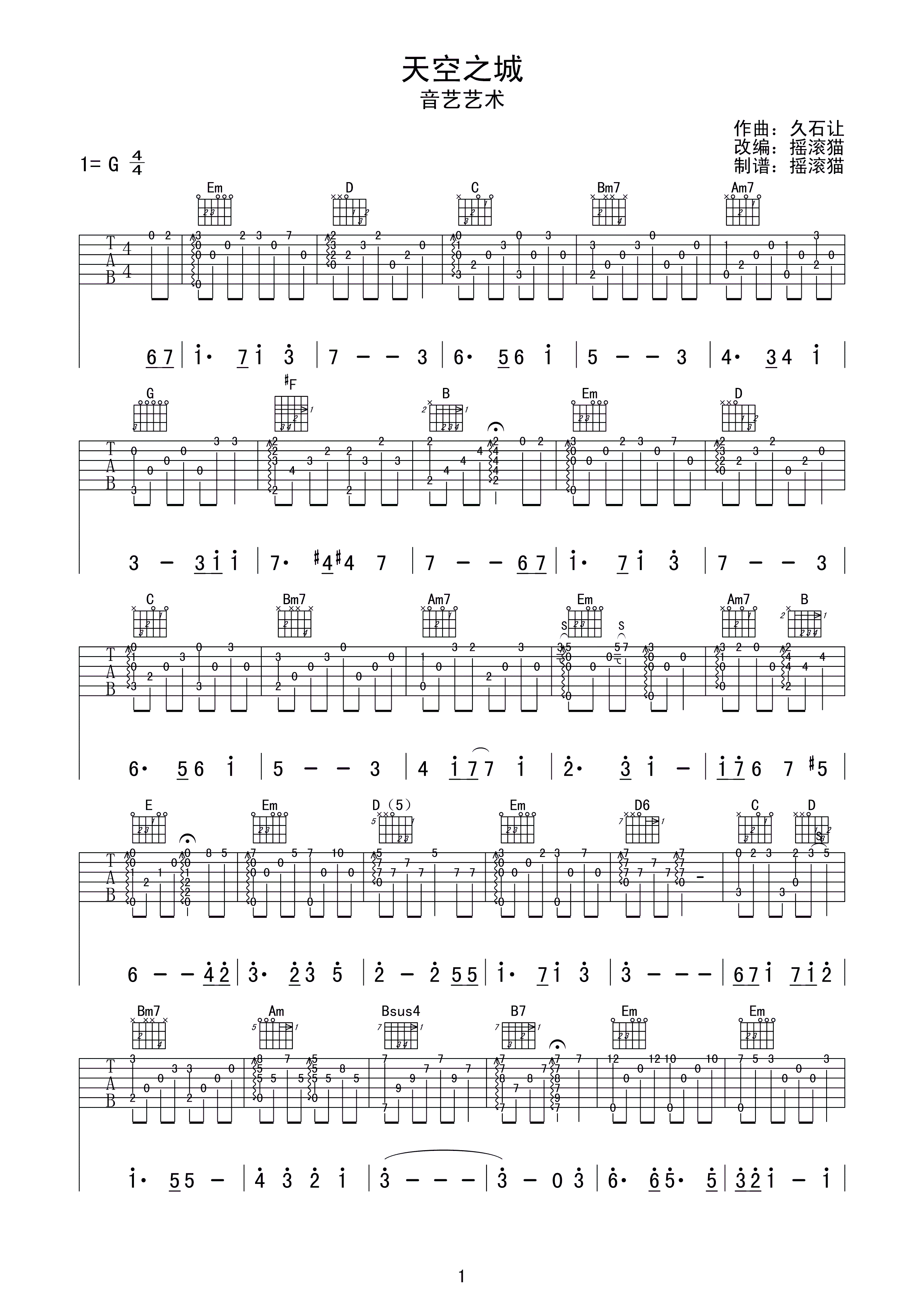 - [钢琴谱,歌谱] 天空之城 八音盒
