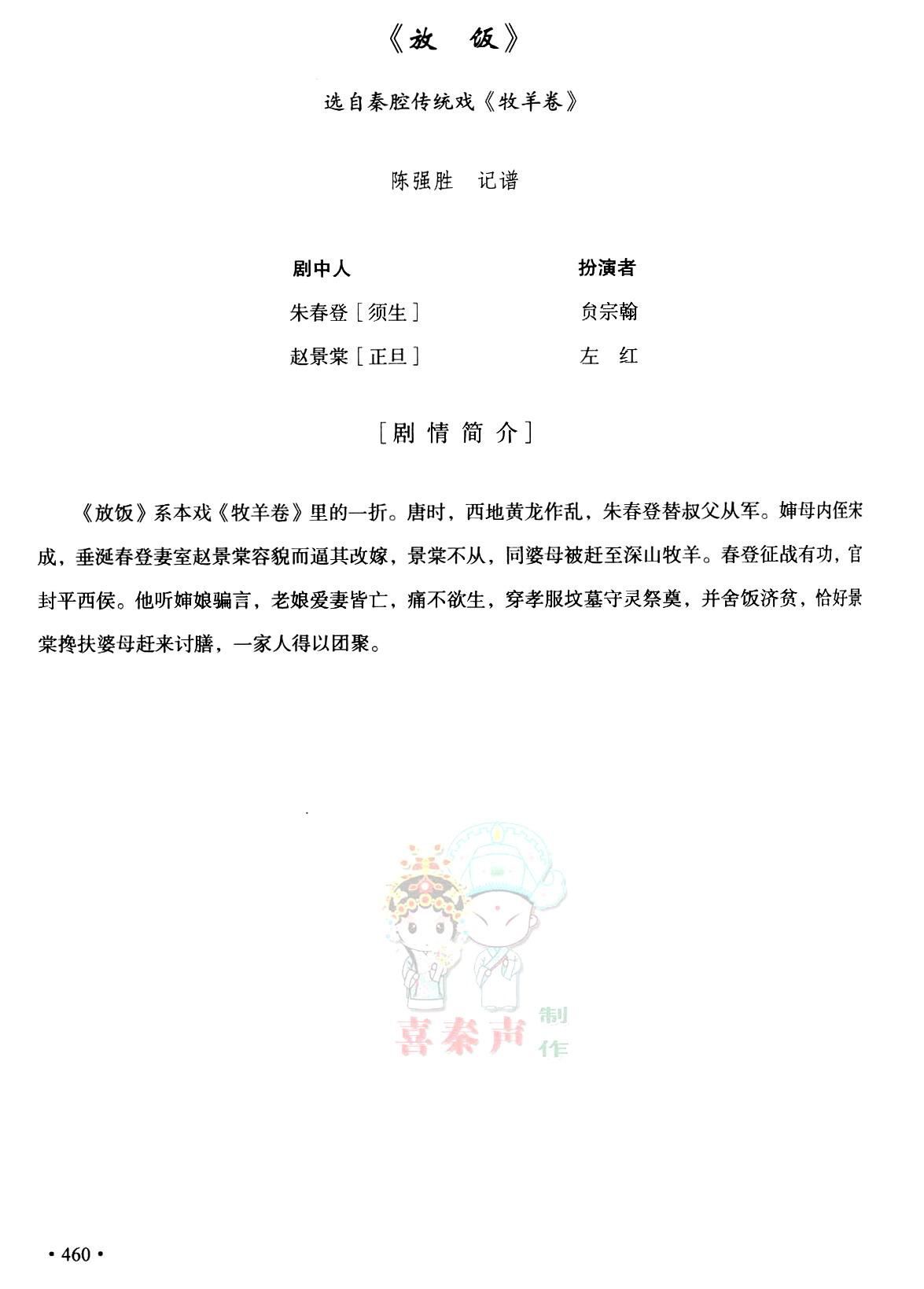 秦腔 全折剧谱 放饭 选自秦腔传统戏 牧羊卷