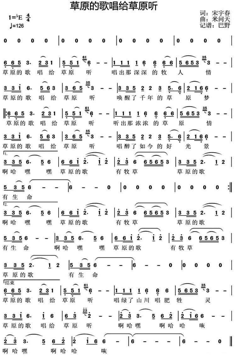 - [歌谱] 草原的歌