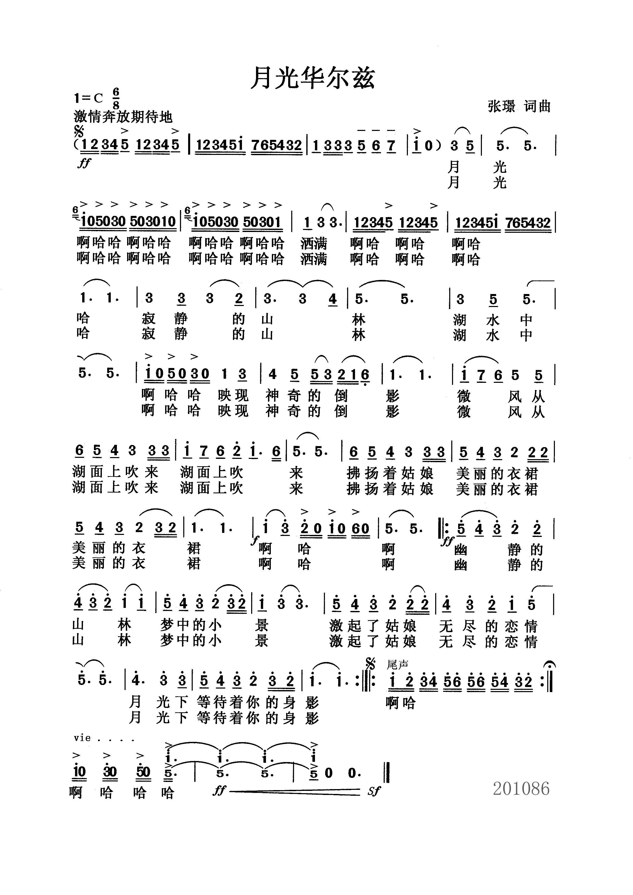 - [歌谱] 心中的歌