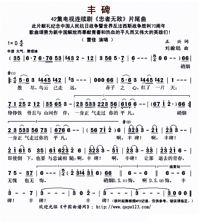 丰碑 电视连续剧 忠者无敌 片尾曲