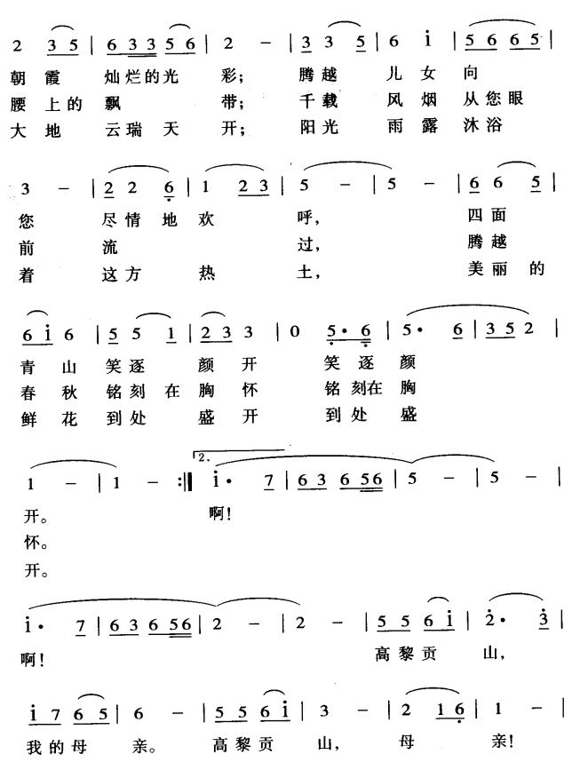 - [歌谱] 亲亲我的高黎贡