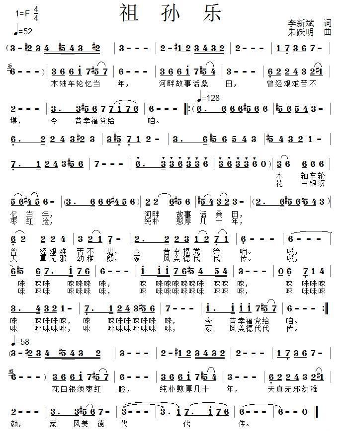 - [评剧谱] 三代人 我们祖孙三代三个姓