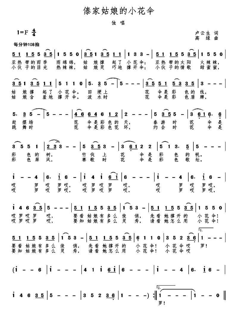 - [歌谱] 傣家姑娘的小花伞
