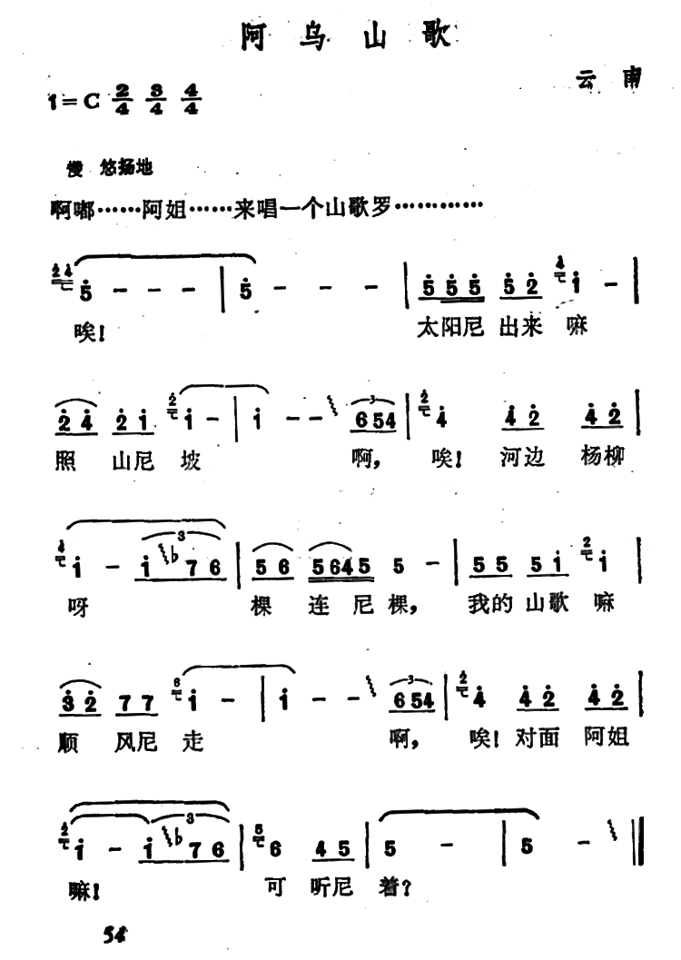 - [歌谱] 阿细山歌