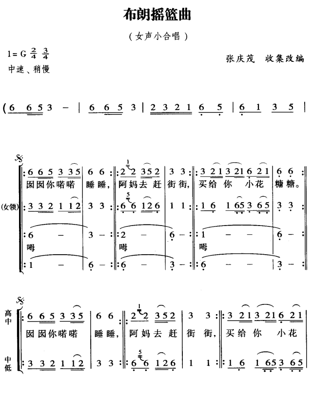 - [歌谱] 摇篮曲