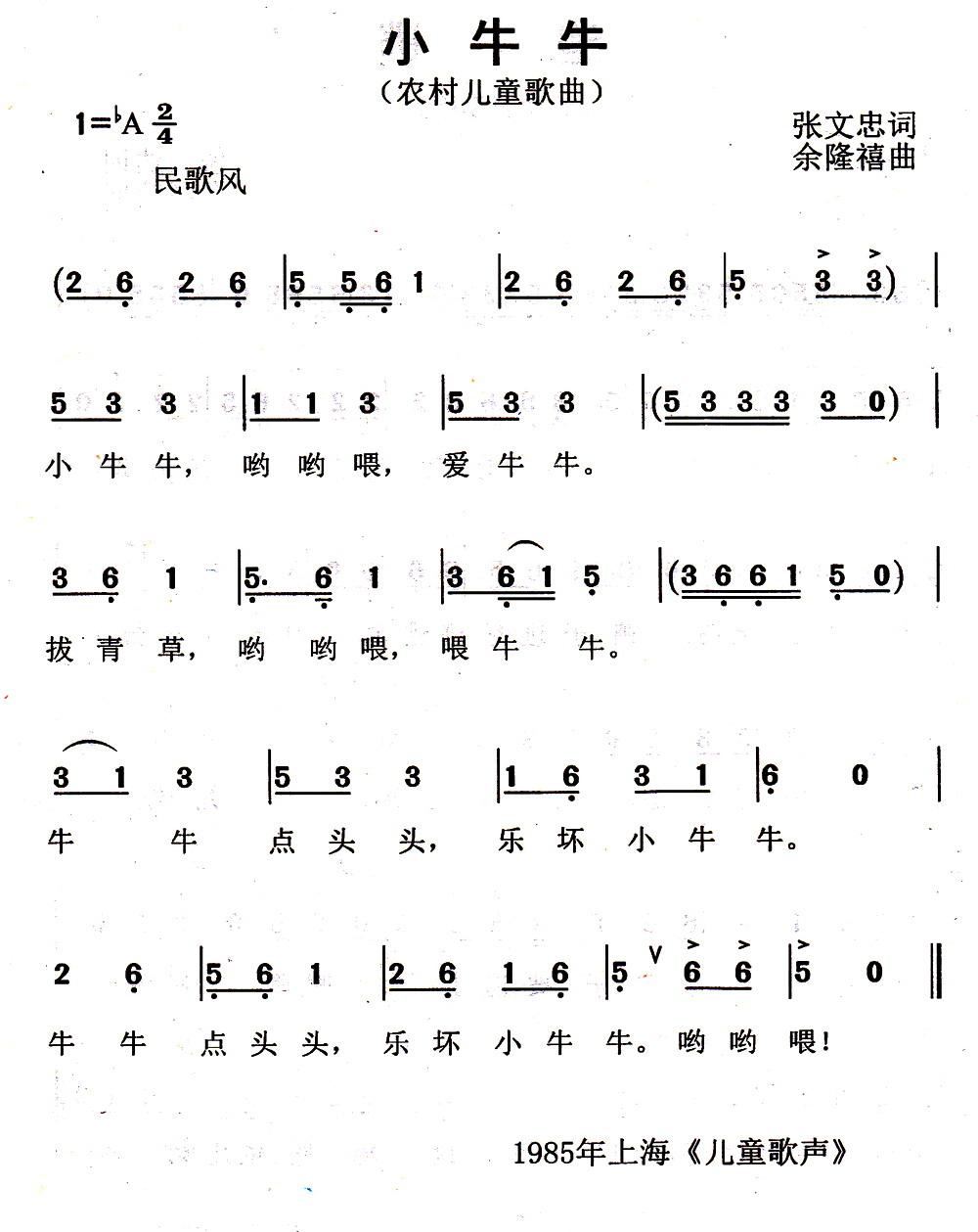 - [歌谱] 小牛牛 放牛牛
