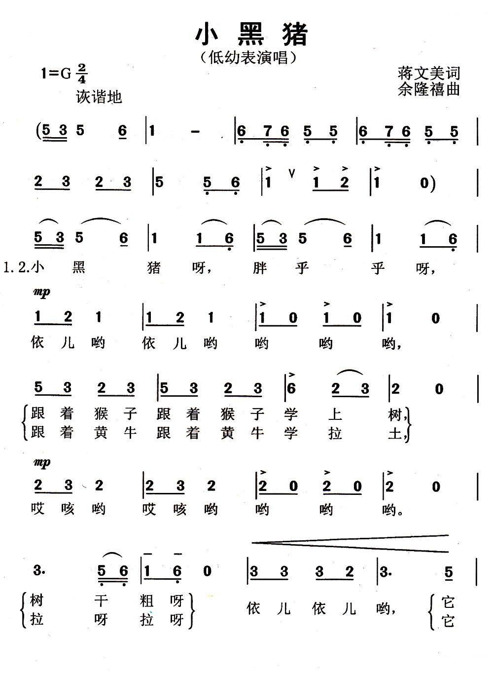 - [歌谱] 小黑猪 山东民歌 儿童歌
