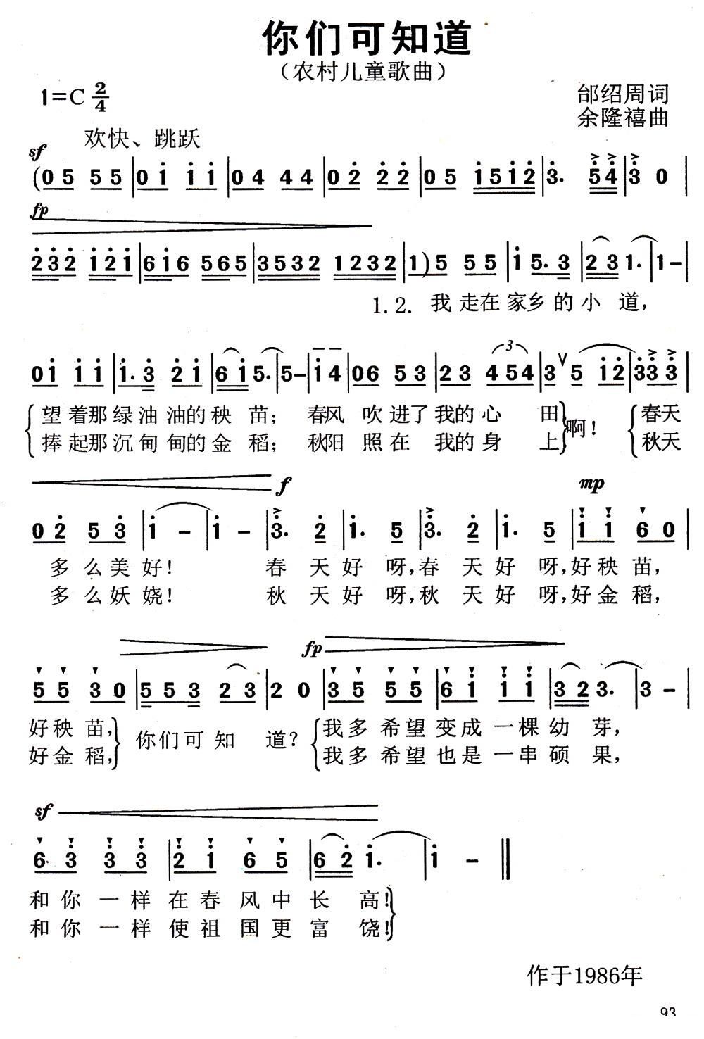 你可知道这首小歌