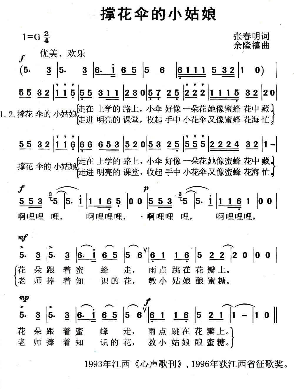 - [歌谱] 路灯下的小姑娘