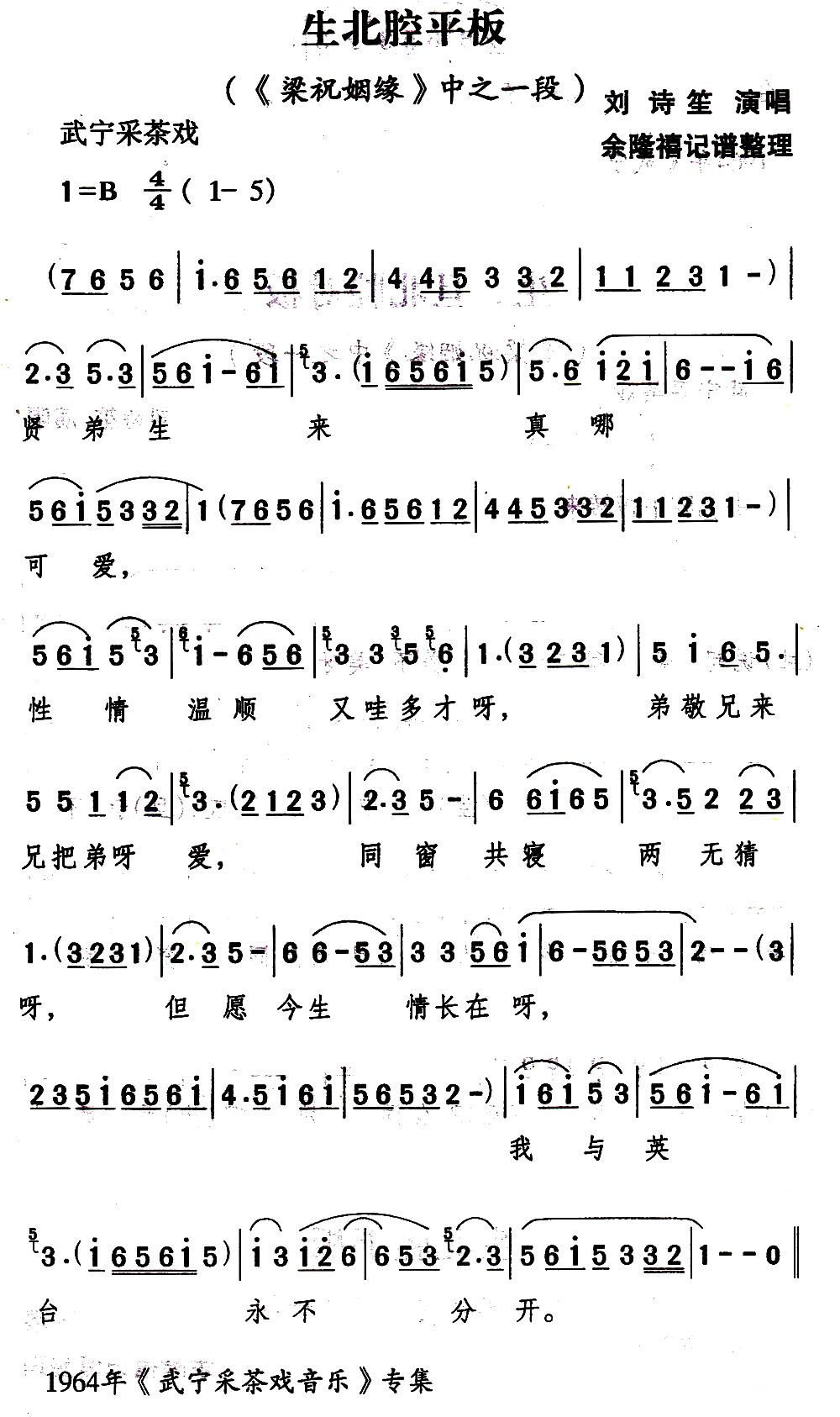 > 武宁采茶戏 生北腔平板 梁祝姻缘 选段