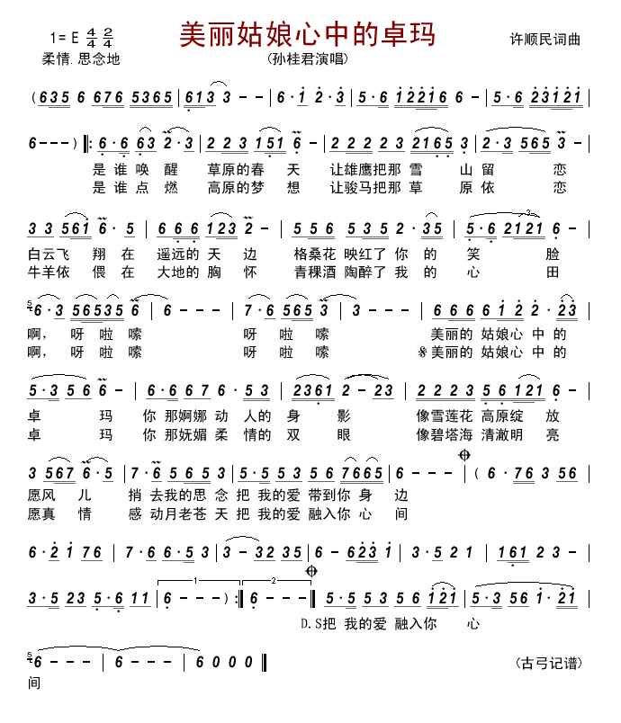 - [歌谱] 美丽的卓玛