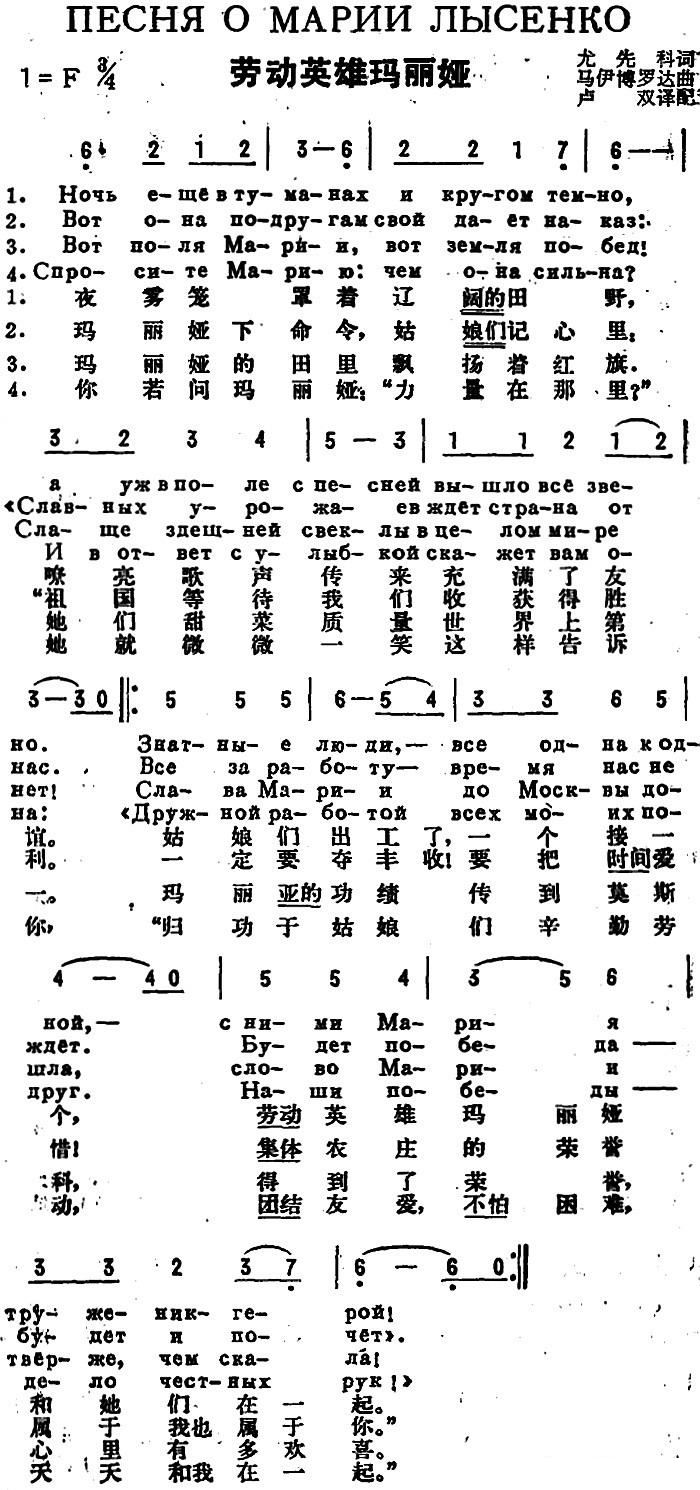 > 前苏联 劳动英雄玛利娅 中俄文对照