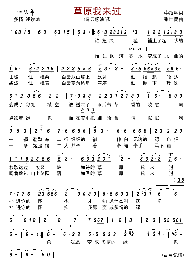 - [歌谱] 草原 我来过