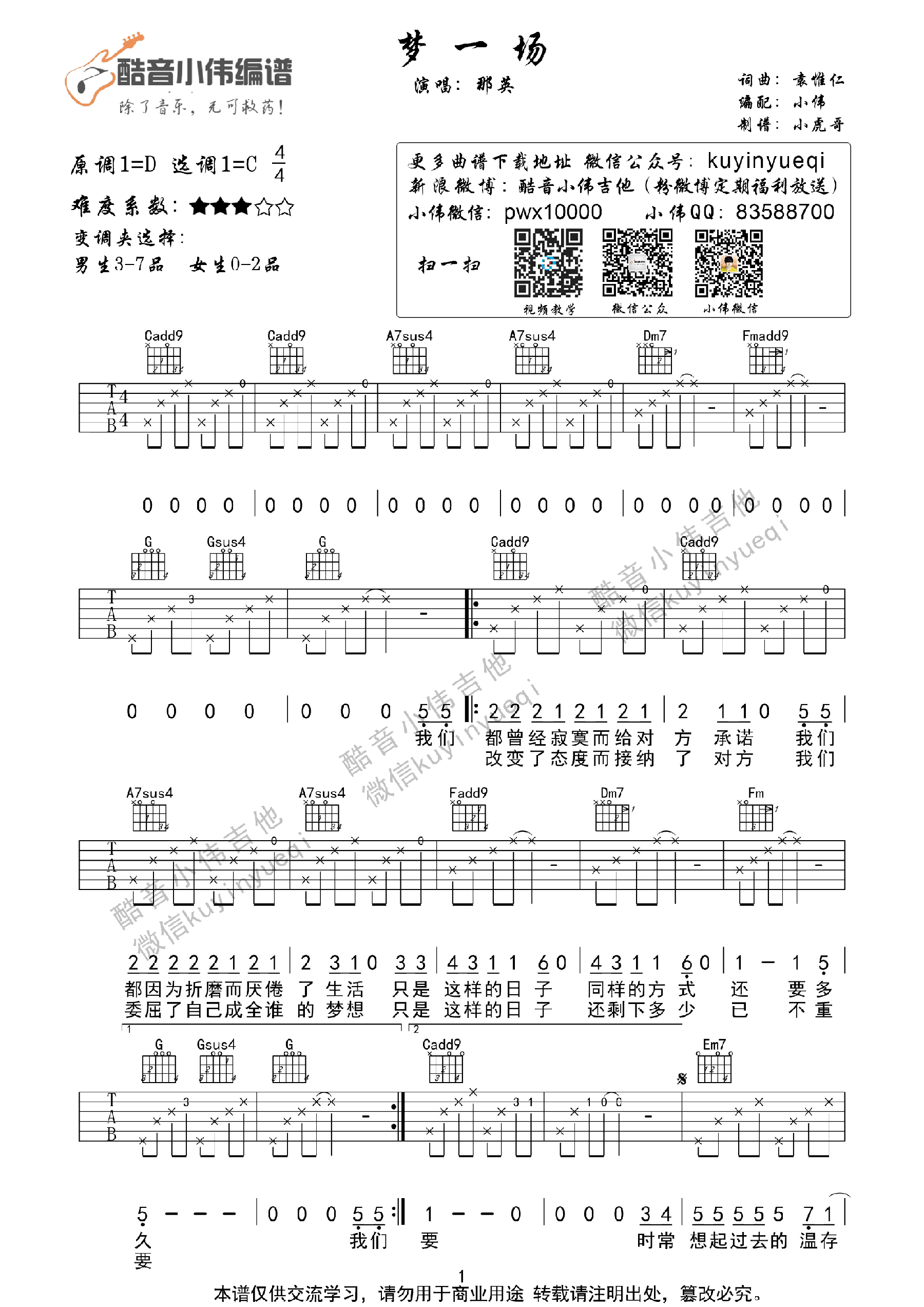 - [笛子谱,歌谱,吉他谱,箫谱] 梦一场 那英