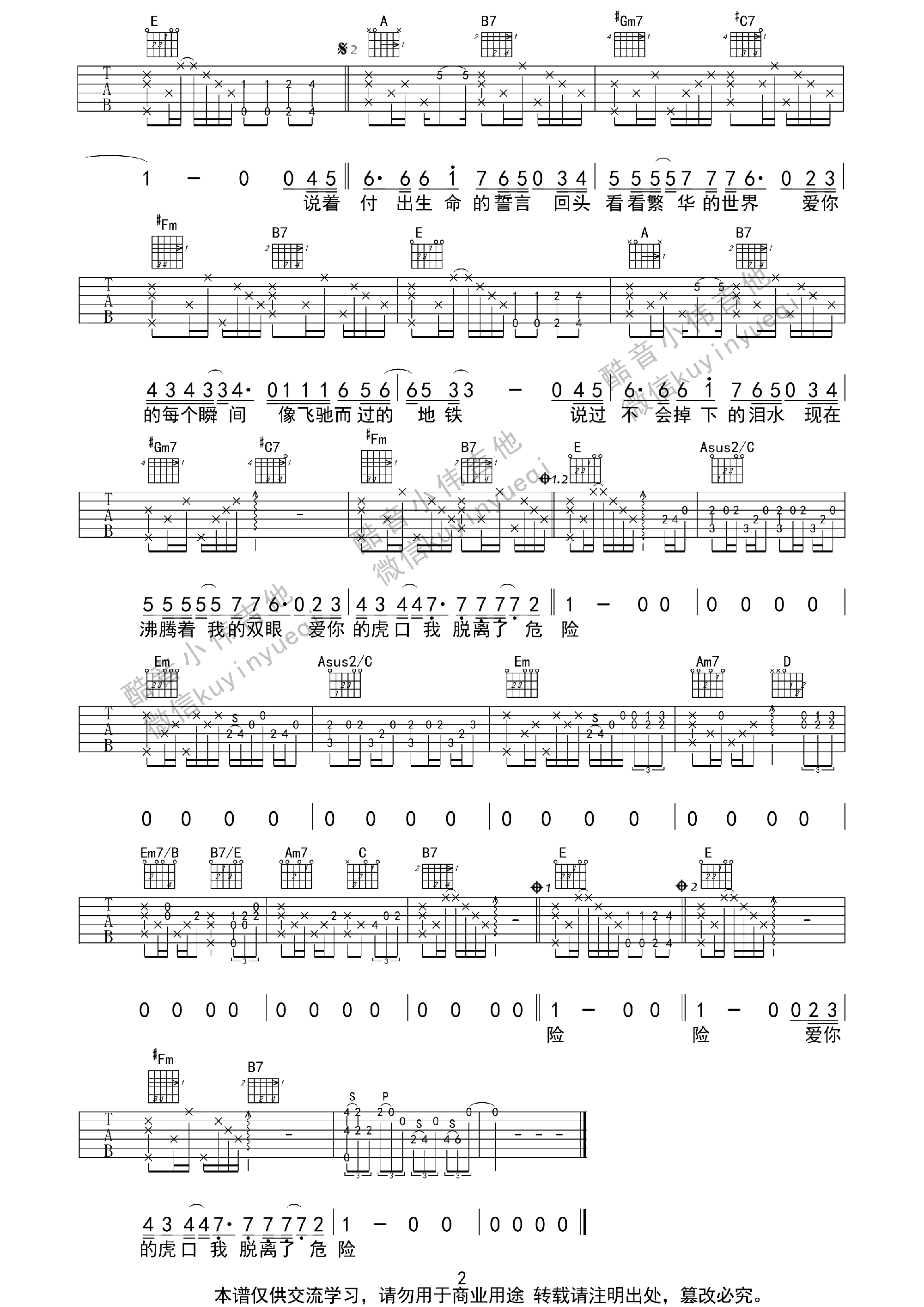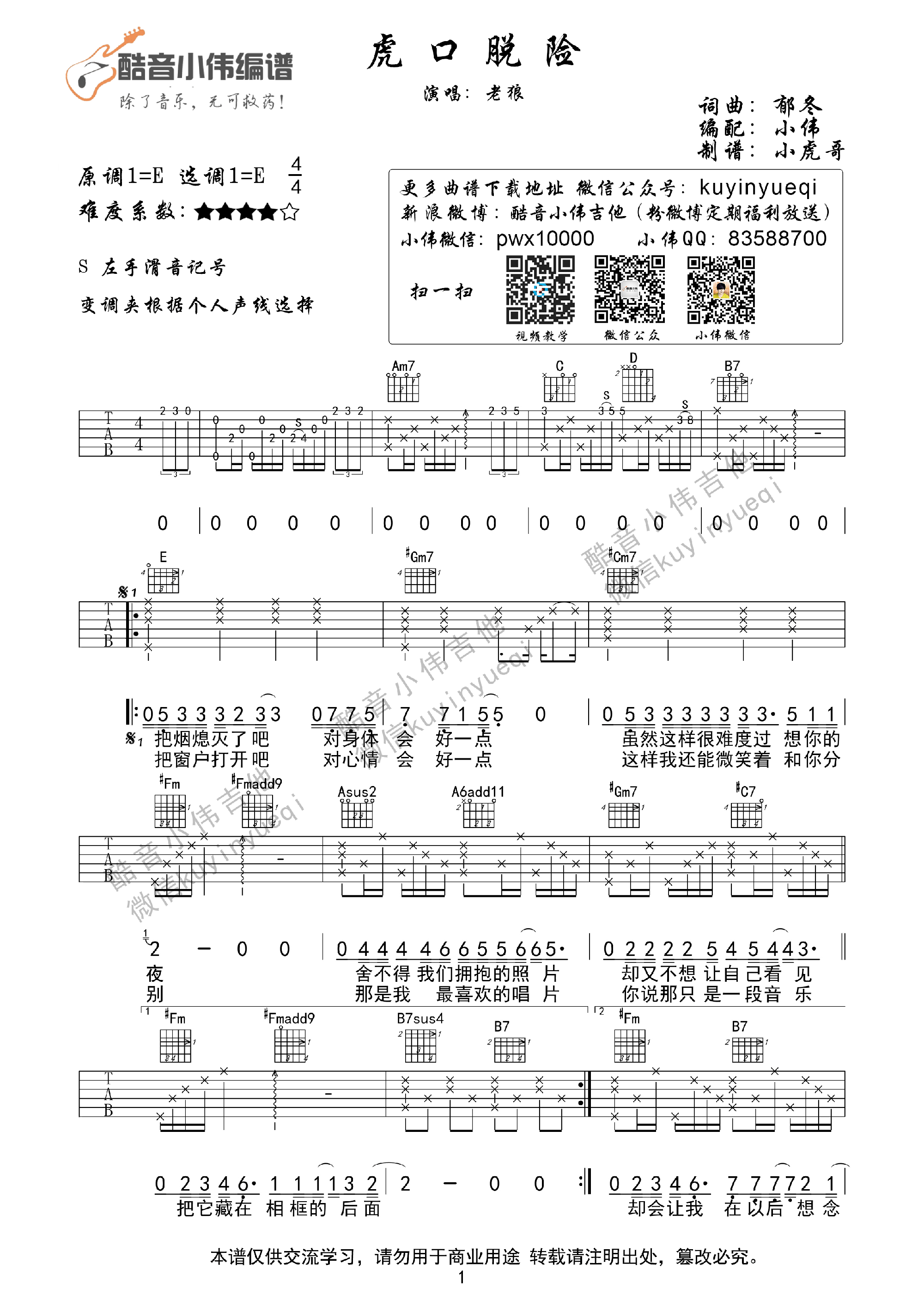 - [吉他谱] 虎口脱险 E调小伟编配版
