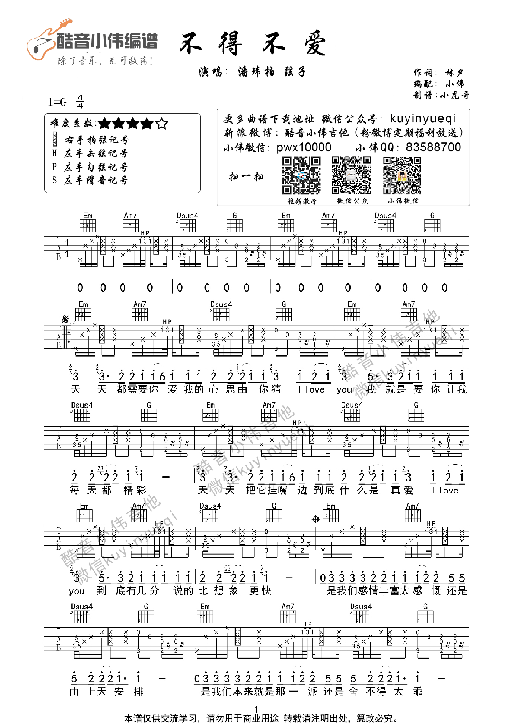 - [吉他谱] 不得不爱 潘玮柏