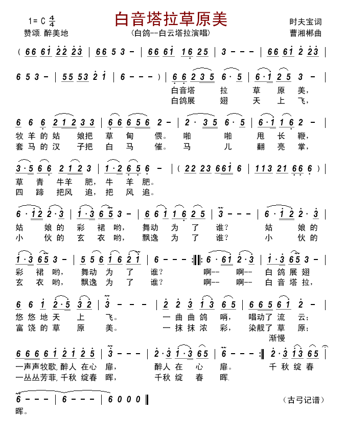 白鸽 白音塔拉 郭宏杰 (1P 788x993 词曲:黾孜 柏泉)