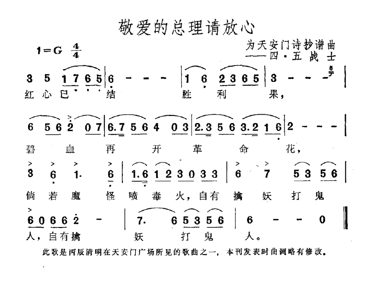 > 敬爱的总理请放心 为天安门诗抄谱曲