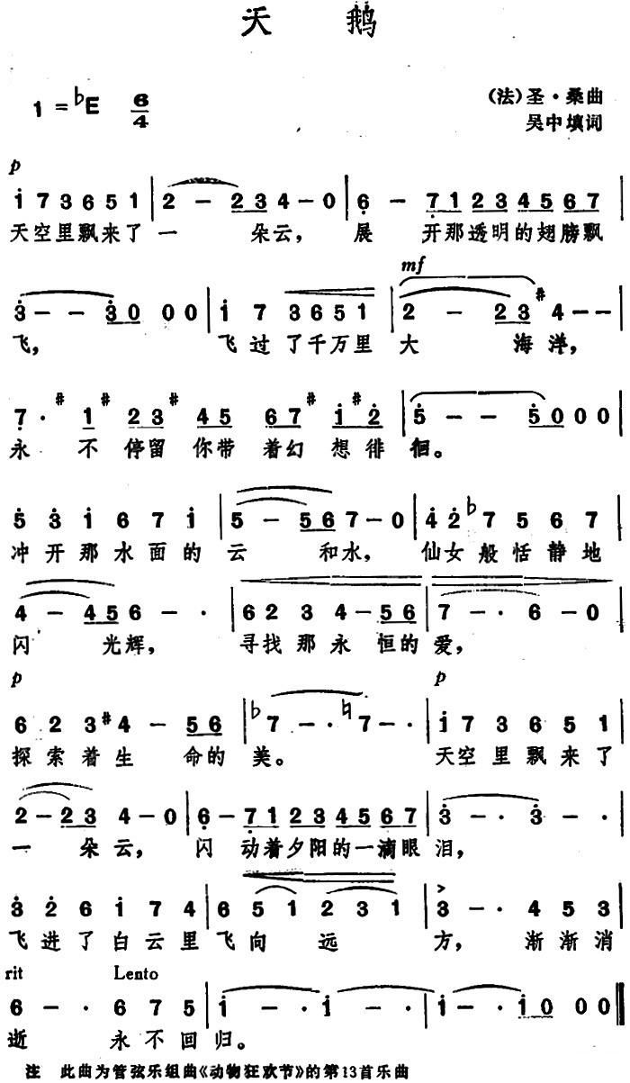 - [歌谱] 天鹅