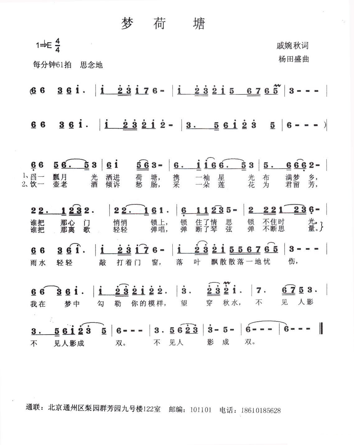 - [歌谱] 梦荷塘