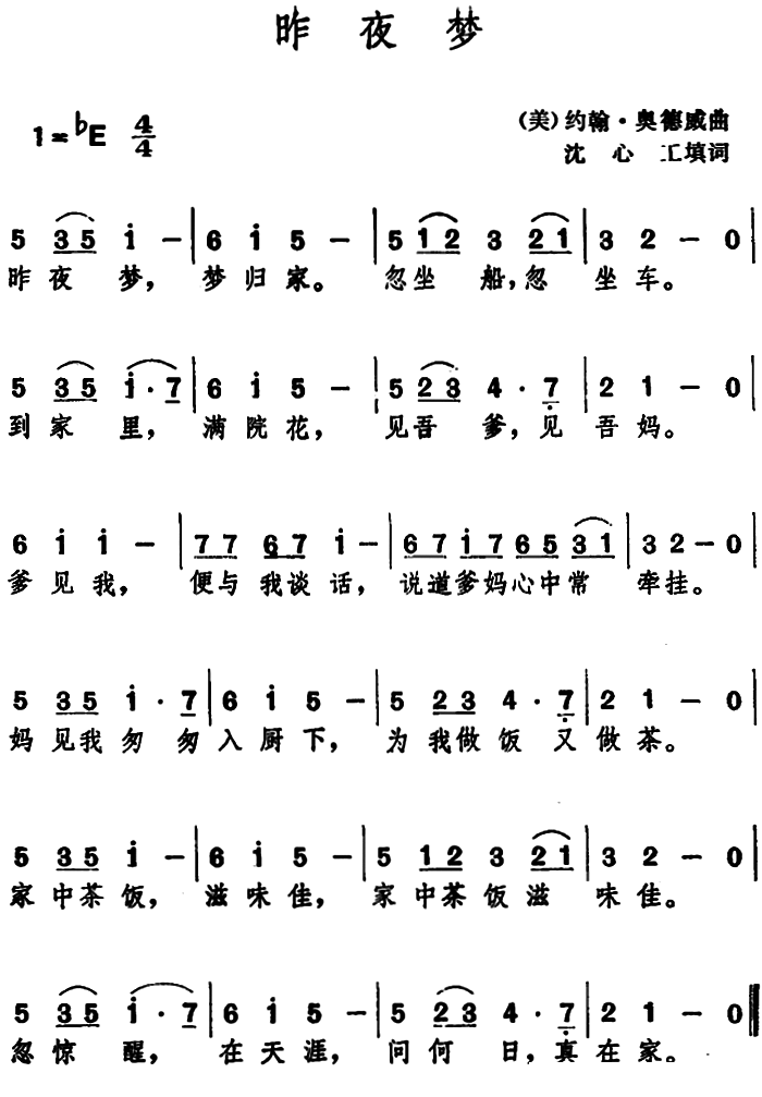 - [歌谱] 昨夜梦故乡