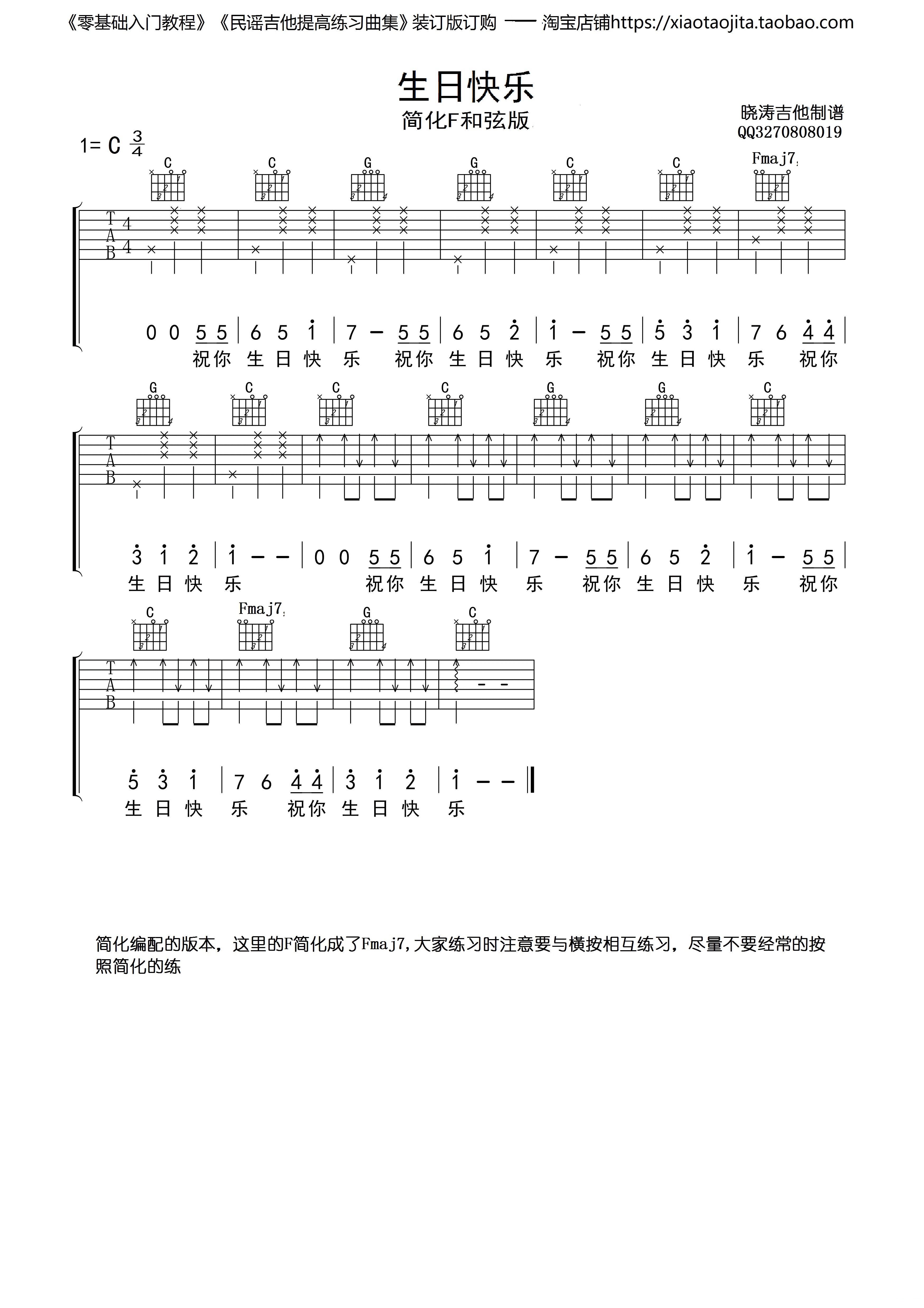 > 生日快乐 吉他弹唱谱