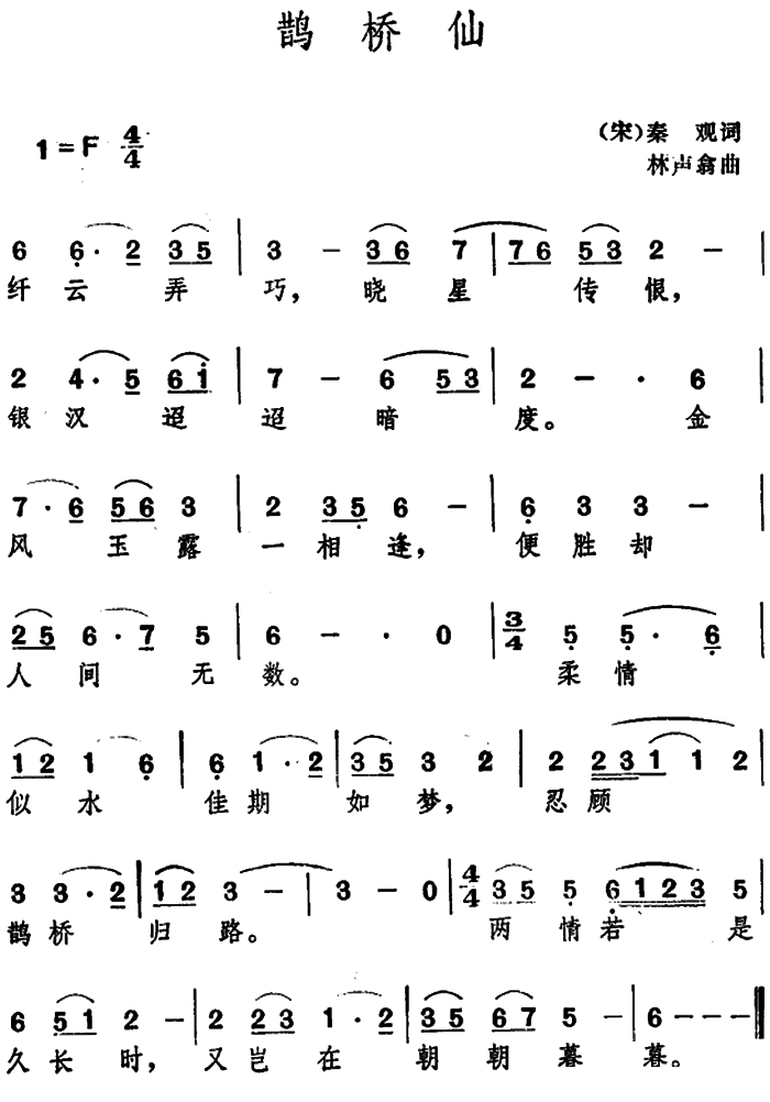 - [歌谱] 鹊桥仙 宋 秦观 诗词