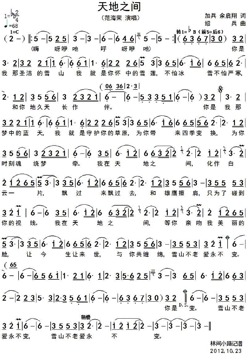 - [歌谱] 天地之间的歌 天地之间 主题曲