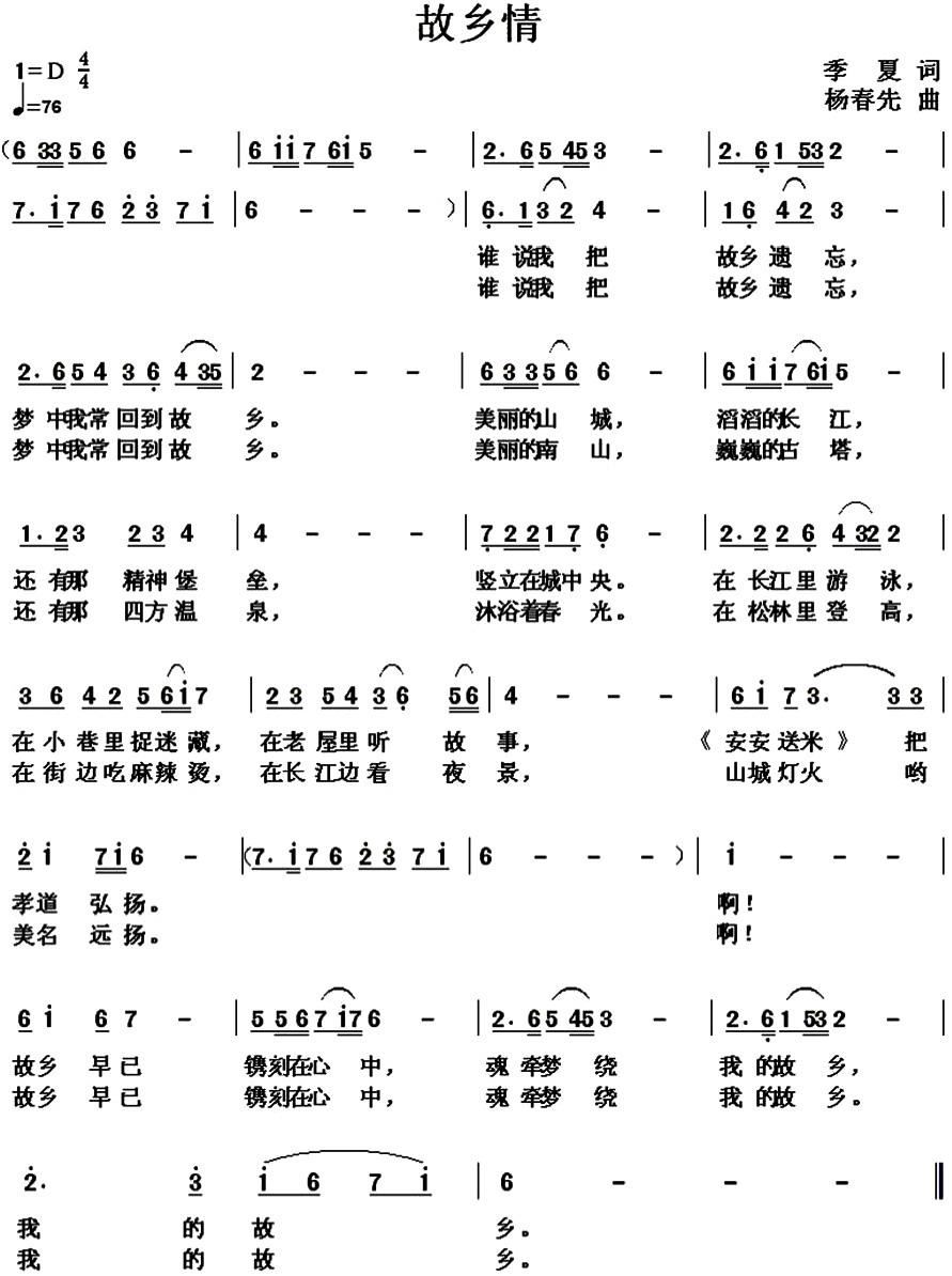 - [歌谱] 故乡情