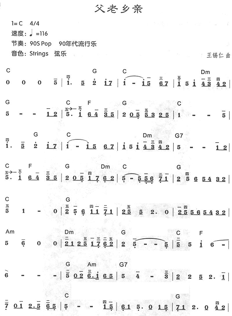 - [钢琴谱,吉他谱] 钢琴 父老乡亲
