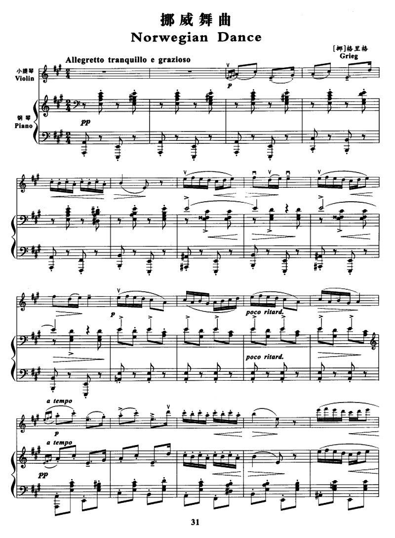 - [小提琴谱] 挪威舞曲 弦乐类 小提琴