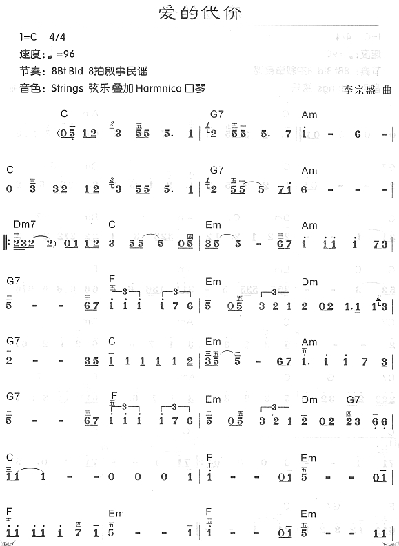 - [歌谱] 爱的代价