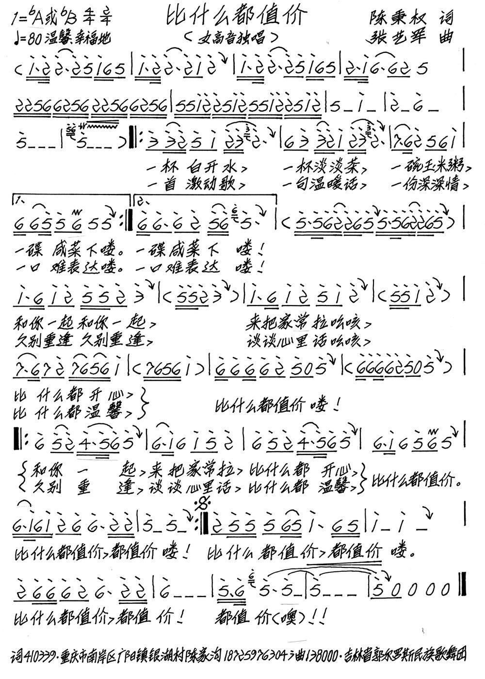 - [歌谱] 比什么都值价