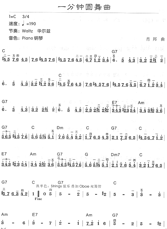 一分钟圆舞曲 钢伴谱 弦乐类 小提琴