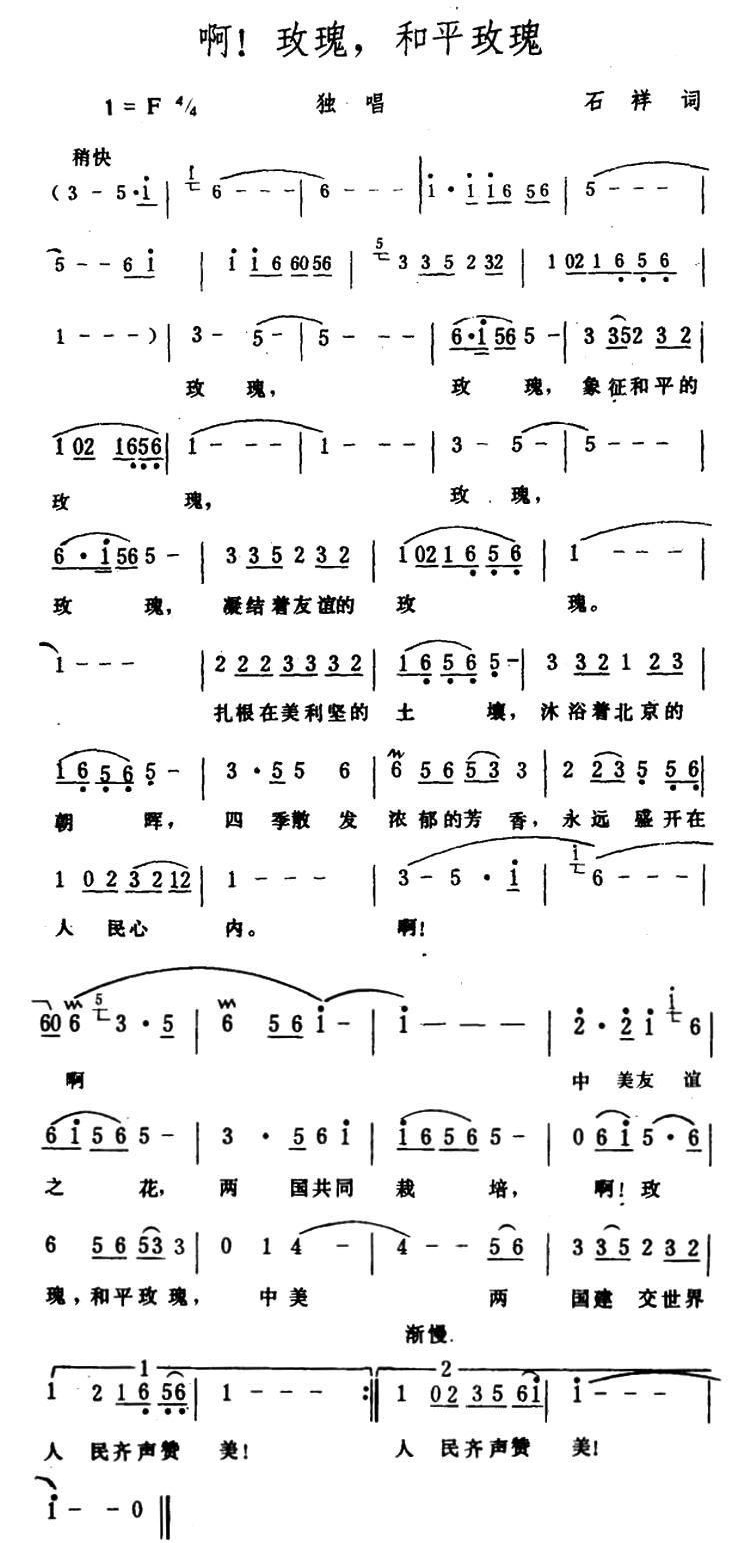 - [歌谱] 美丽的和平玫瑰