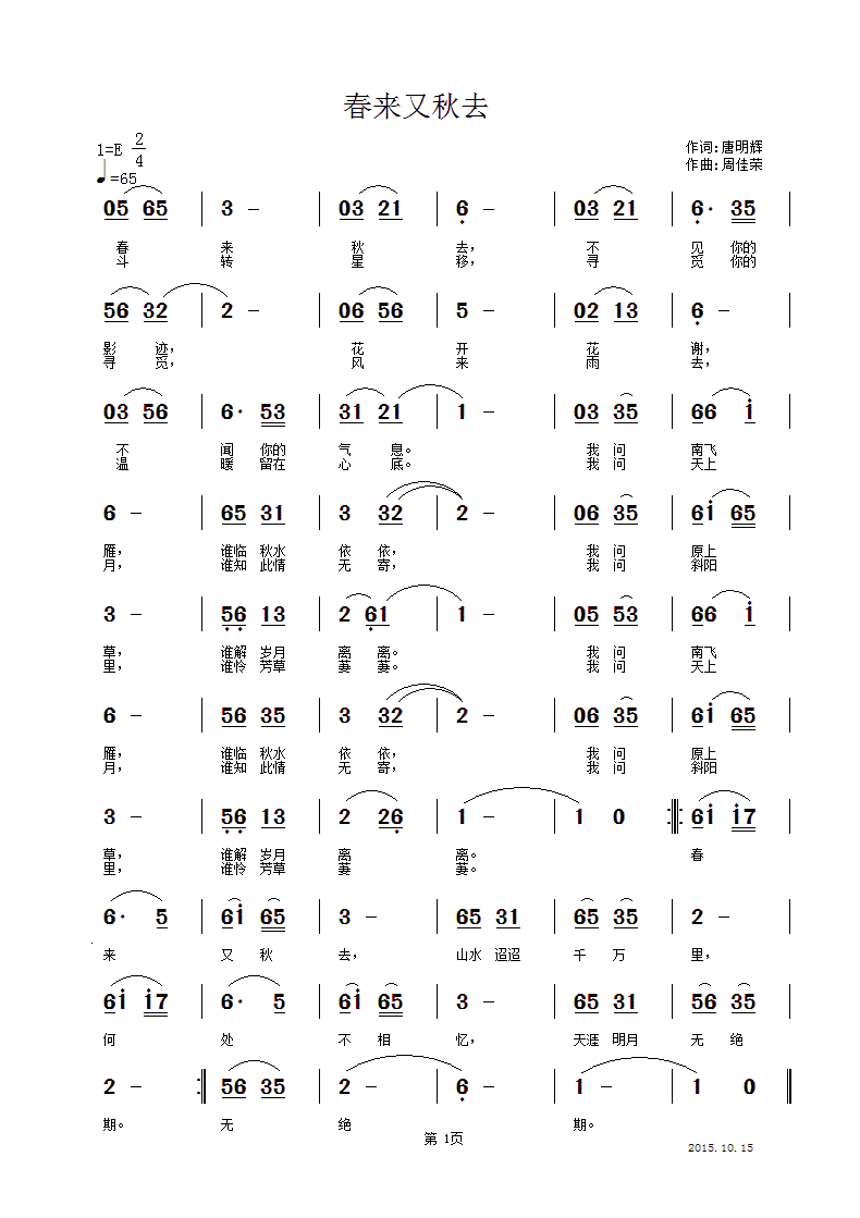- [歌谱] 秋去秋来