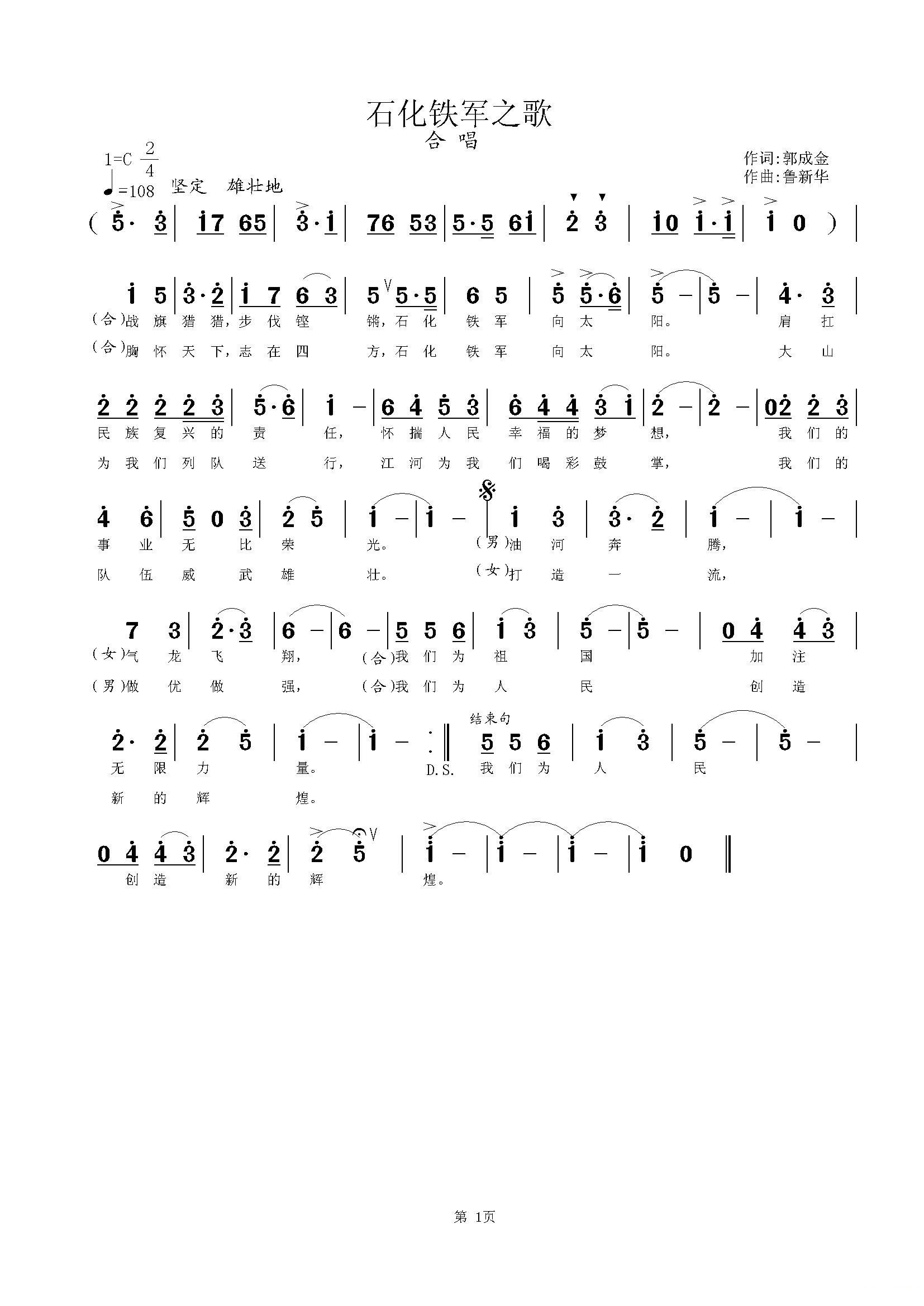 辽河石化公司之歌 合唱谱