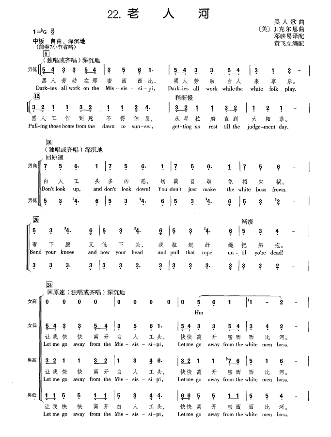 > 美 老人河 合唱 黄飞立编配