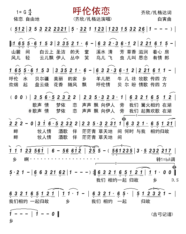 - [歌谱] 呼伦牧歌
