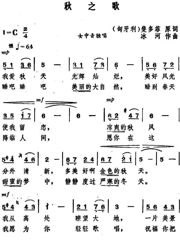 - [歌谱] 我愿意是急流 匈牙利 裴多菲